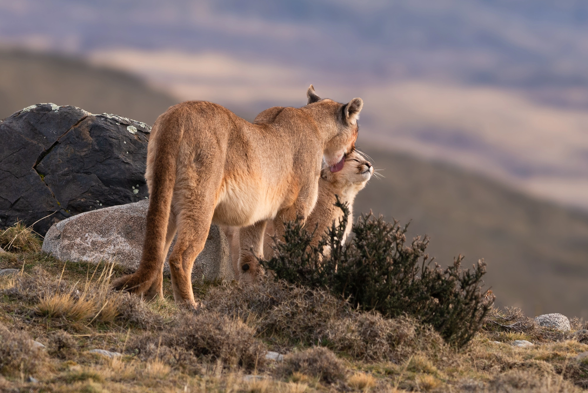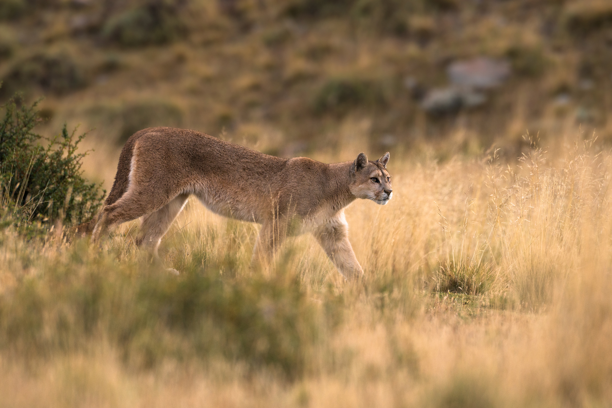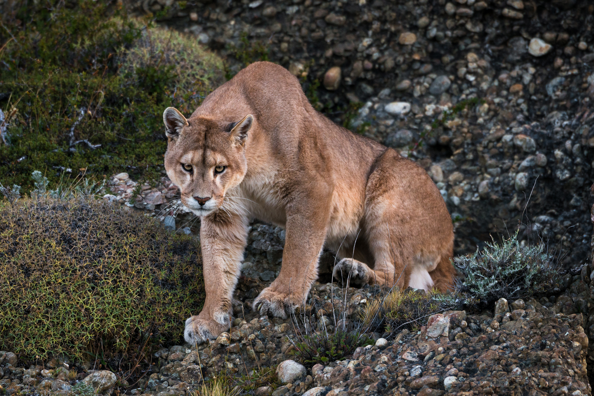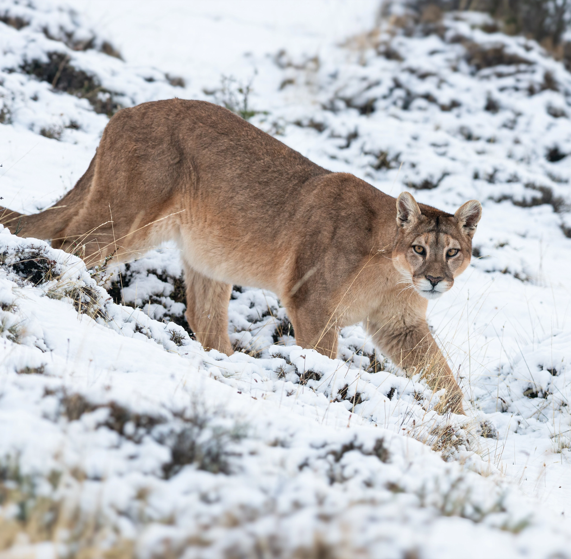 In Patagonia, the southernmost region of South America, pumas have a particularly strong presence. The vast, windswept steppes and rugged mountains provide ideal terrain for this stealthy predator. Here, they are the apex predator and mainly feed on guanacos, a native herbivore, and European hares, which were introduced to the region. These two species make up the bulk of the Patagonian puma’s diet. In recent years, the puma population in Patagonia has gained attention not only for its ecological importance but also for its role in ecotourism, with travelers eager to spot the elusive cats in places like Torres del Paine National Park. Conservation efforts are ongoing to ensure their coexistence with local ranching communities and the fragile Patagonian environment.