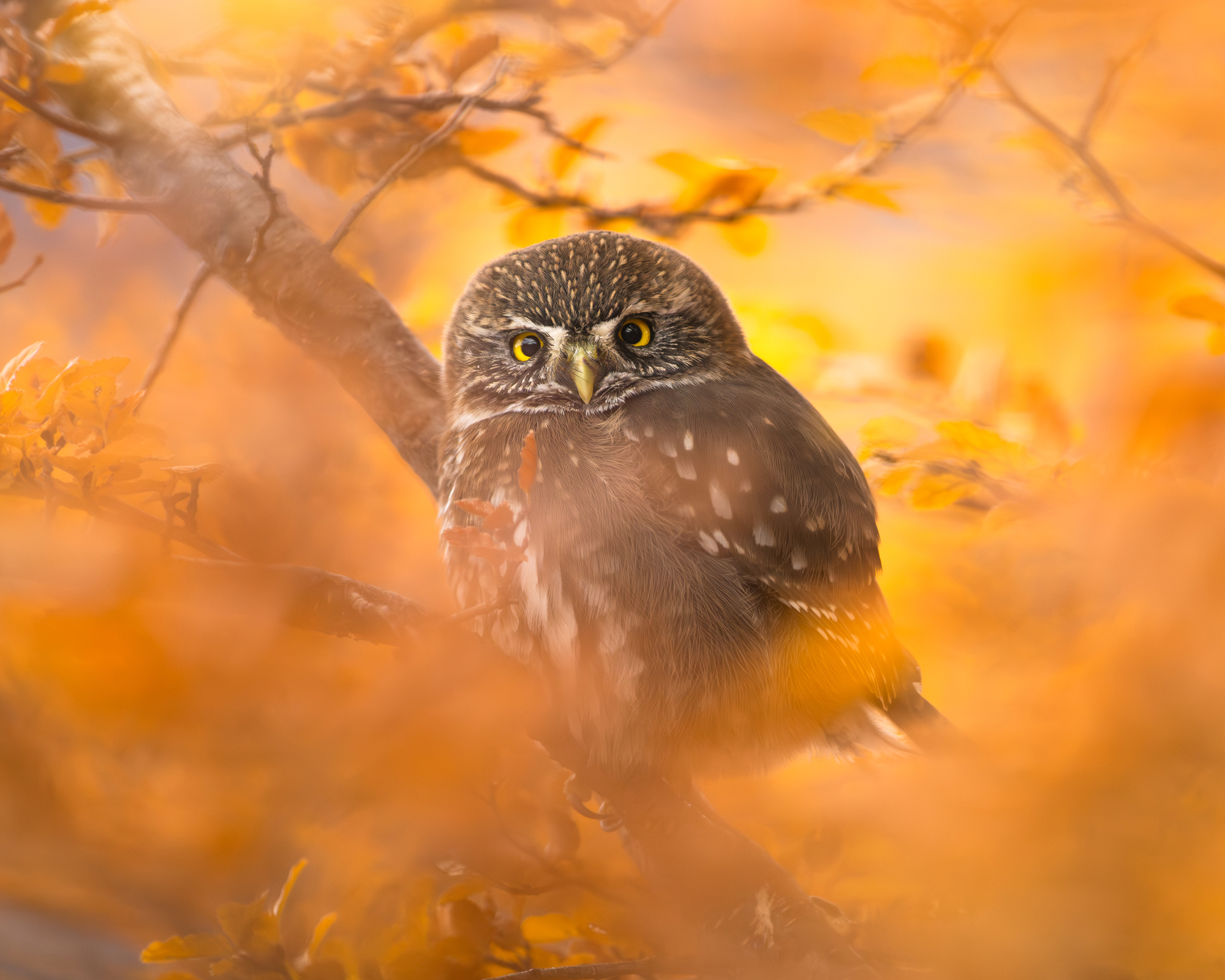 In Patagonia, the Austral pygmy-owl inhabits temperate forests and woodland edges, often perching quietly in the lower branches of trees while scanning for movement below. Its presence is an important indicator of forest health, as it relies on diverse, structurally complex habitats to find both prey and nesting sites—typically using tree cavities. Though relatively common, it faces threats from deforestation and habitat degradation. Conservation of native forests in regions like Patagonia is essential for maintaining stable populations of this charismatic and ecologically valuable owl.