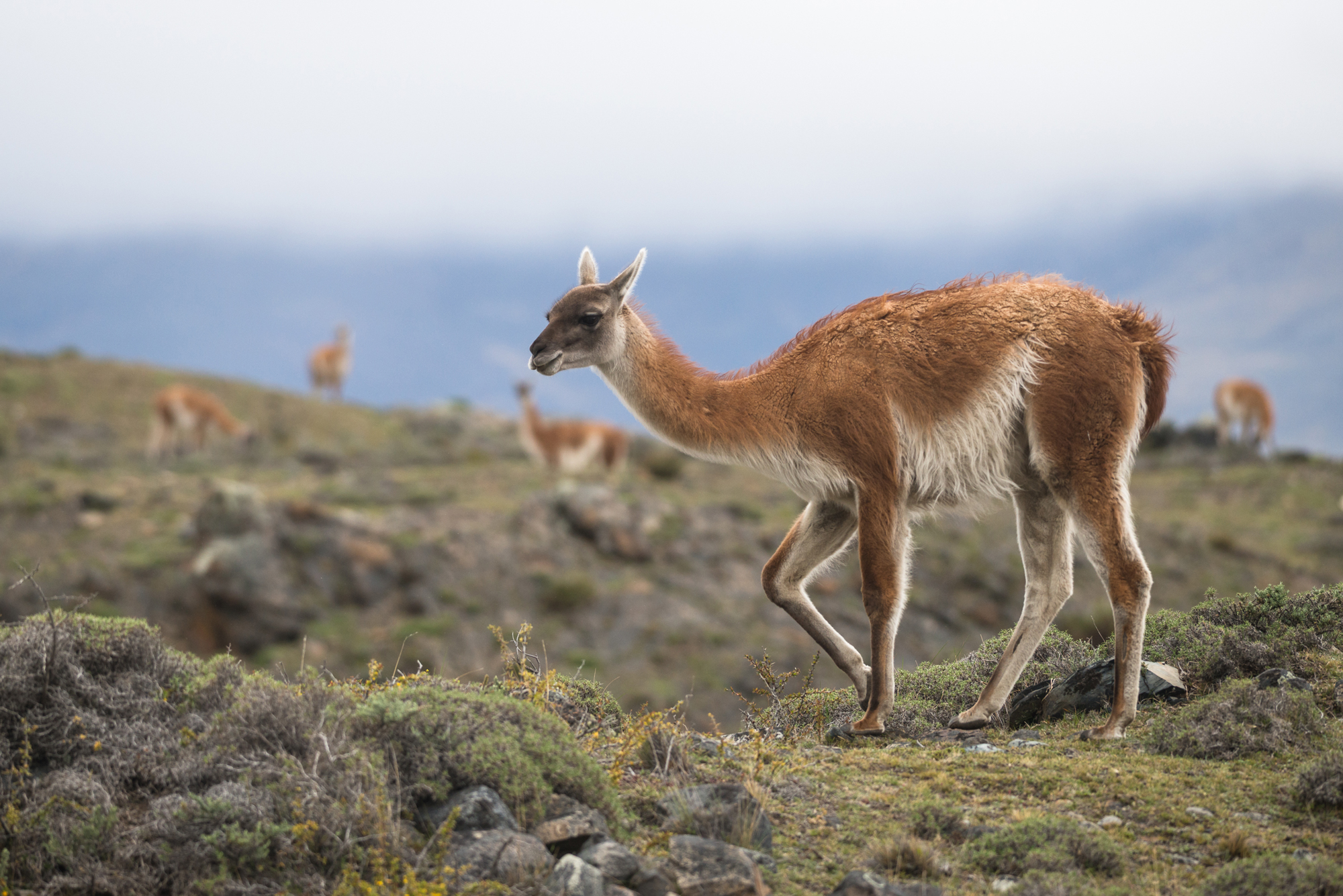 In Patagonia, guanacos are a key species in the region’s grassland and shrubland ecosystems. They are one of the most common and important large herbivores in this vast landscape, thriving in areas with sparse vegetation and strong winds. Guanacos are also the main natural prey of the Patagonian puma, forming a critical link in the food chain. Their presence supports not only predators but also ecotourism, as herds of guanacos are a common and iconic sight in places like Torres del Paine National Park. Conservation efforts in Patagonia have helped maintain healthy guanaco populations, though habitat loss and competition with livestock remain ongoing concerns.